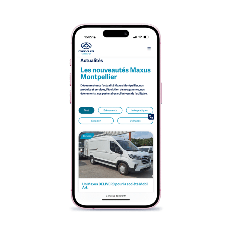 Maxus Taillefer, concessionnaire officiel de la marque chinoise Maxus à Montpellier, a confié à Karita la création de son site internet. Ce projet accompagne le lancement officiel de Maxus en France, avec pour objectif de renforcer sa présence digitale et de valoriser ses véhicules utilitaires électriques (VUL).